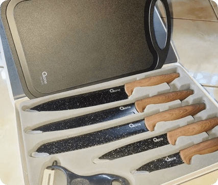"Menurut saya pisaunnya sangat baik dengan harga yang cukup murah, pisaunya tebal, desain yg bagus, cukup tajam. Menurut saya ini akan cocok untuk kado karena kotaknya yang bagus dan tebal"